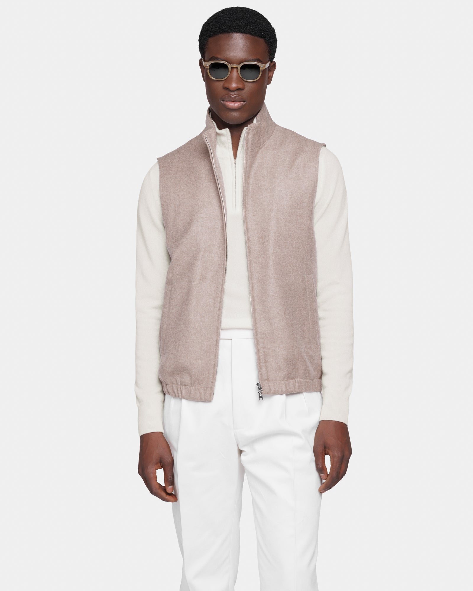 Our collection of sartorial vests is born from the meeting of tailoring construction and exceptional materials, reinterpreted through a functional and contemporary lens. Luxurious yet essential pieces, crafted in the refined water-repellent wool–cashmere “Favola” blend by Loro Piana, and lined with the ultra-fine “Sunny Season” wool by Vitale Barberis Canonico, among the most esteemed mills in the world.