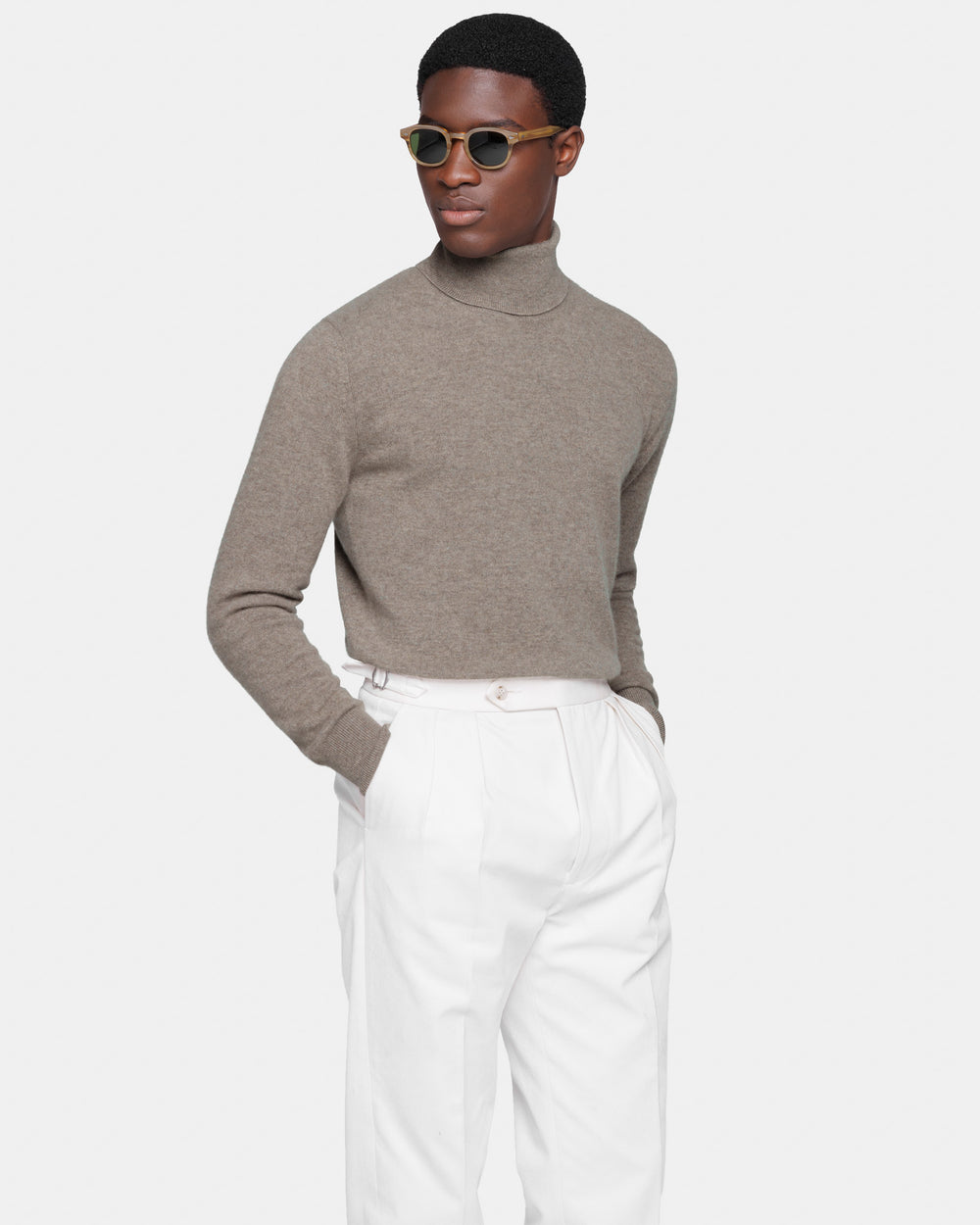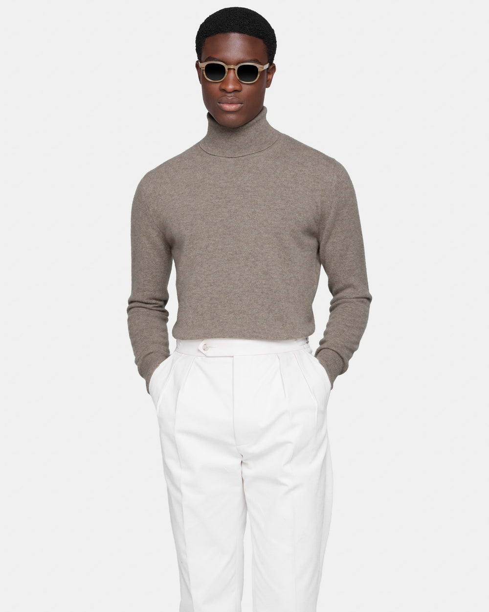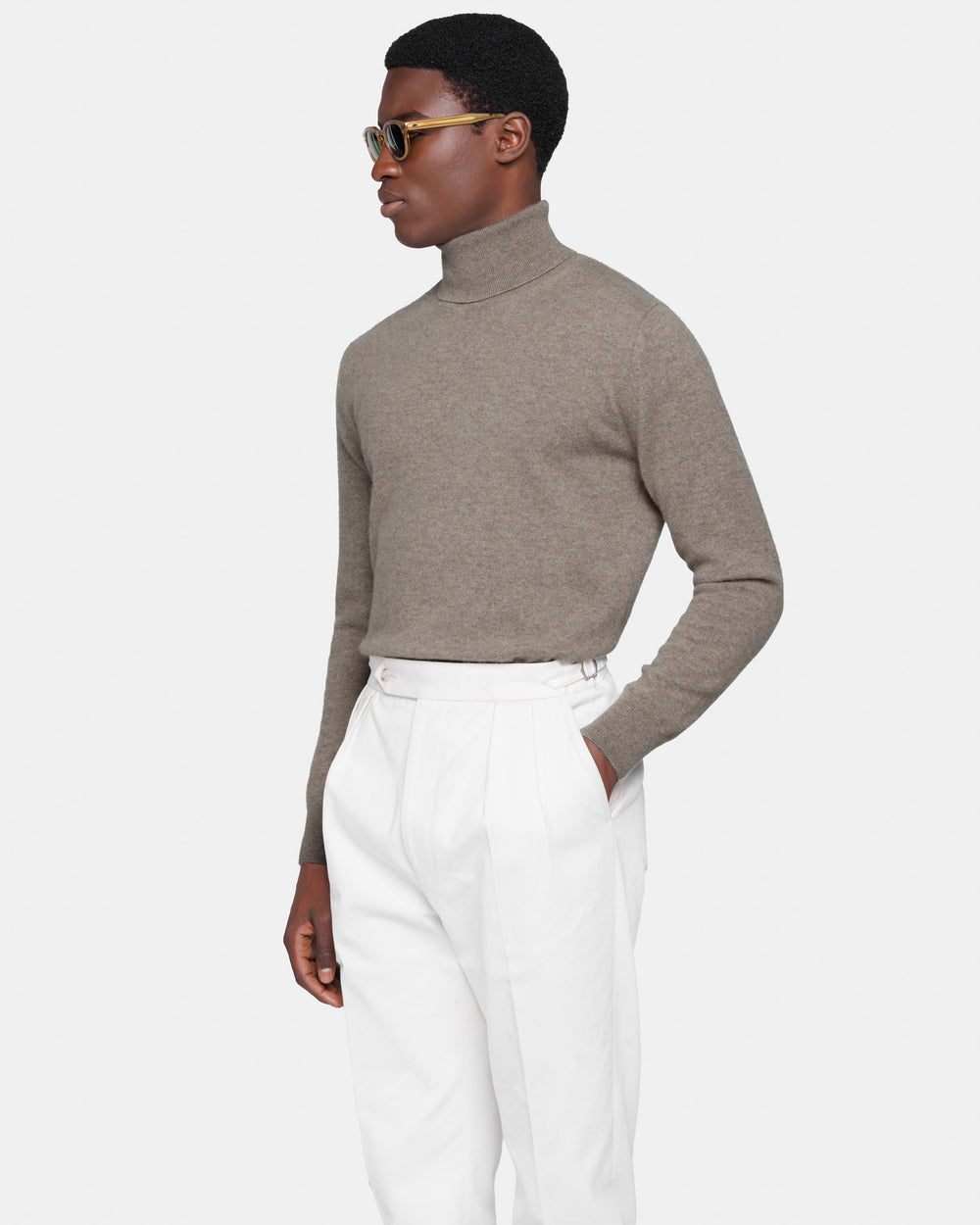 Maglia su misura ad 1 filo dal titolo 2/27 manica lunga tinta unita tortora modello dolcevita, realizzata in una pregiata, ricercata e finissima fibra di puro cashmere Crown Reserve proveniente dalle regioni più remote della Mongolia, per arrivare negli stabilimenti di Quarona Sesia in Piemonte, dove viene abilmente lavorata dalla filatura più prestigiosa al mondo per dare vita ad un filato cardato dal titolo 2/27.